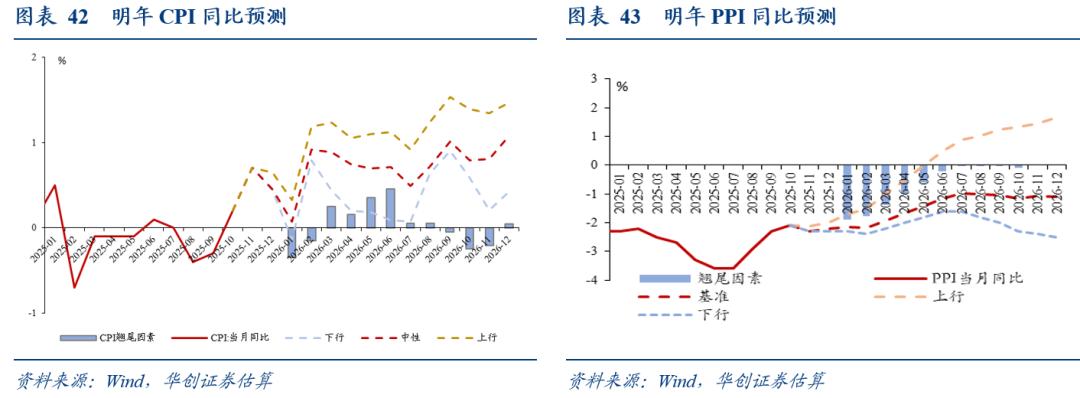 2、首先,CPI,尚有最后一关,若明年1月依然为正,则预计明年CPI同比逐月皆为正。今年CPI同比约0%(翘尾-0.4%,新涨价0.4%),预计明年CPI同比约0.7%(翘尾0,新涨价0.7%)。但,CPI回升中技术性因素(如翘尾)占主导,新涨价体感与今年变化并不大。对投资而言,CPI同比转正有助于整体风险偏好,但并不足以强到主导消费链条走势,即“氛围”意义大于“具体”意义。就年度环比涨幅而言,预计猪肉、能源略好于今年,核心CPI略低于今年(2025年补贴带来的耐用品涨价影响较大)。就上行风险而言,我们建议关注服务业的价格,若政策力度较大,服务业或有涨价可能。
