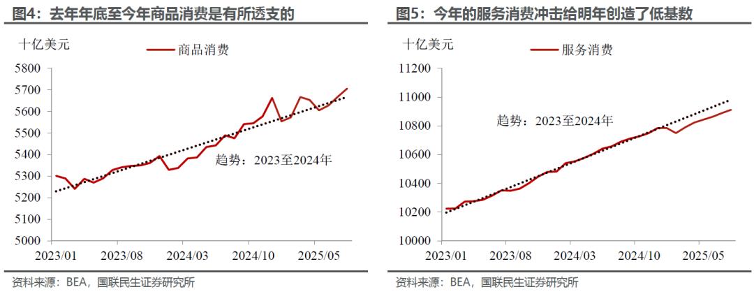 我们认为,消费决定美国经济的周期性波动和节奏,AI等制造业投资决定经济的弹性。2026年整体消费或进一步改善,核心原因在于减税的生效、关税部分退坡、以及特朗普在政策上更加注重民生。结构上,因为2025年政策冲击的影响,比如关税导致耐用品的提前消费和透支,我们认为,商品消费增速可能放缓,服务消费则会加速。
