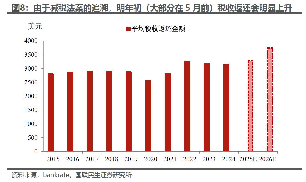 明年美国消费将呈现怎样的波动节奏?从节奏上看,我们认为可能是前低后高。上半年消费有望寻底企稳:税收返还和可能的“发钱”对冲冲高的通胀,以及今年年末就业和情绪冲击的余波。下半年在货币继续宽松(预期)和通胀回落的影响下,消费可能延续改善。